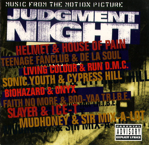 Unapologetically standing on the shoulders Aerosmith + Run DMC’s success with their collaboration on “Walk This Way” on Run DMC’s 1986 Raising Hell, the producers of Judgement Night tapped popular rap groups at the time (including Run DMC, for good measure) with hard rock and alternative pop-rock groups, including Sonic Youth (paired with Cypress Hill), Dinosaur Jr (paired with Del tha Funkee Homosapien) and Mudhoney (paired with rap royalty Sir Mix-A-Lot), among others. Most of the musical pairings were done pretty well, producing, if not a great stand-alone track, at least some interesting, innovative musical styles for the time…though the popularity of the soundtrack also largely birthed the almost universally terrible 90’s rap-rock genre to come.